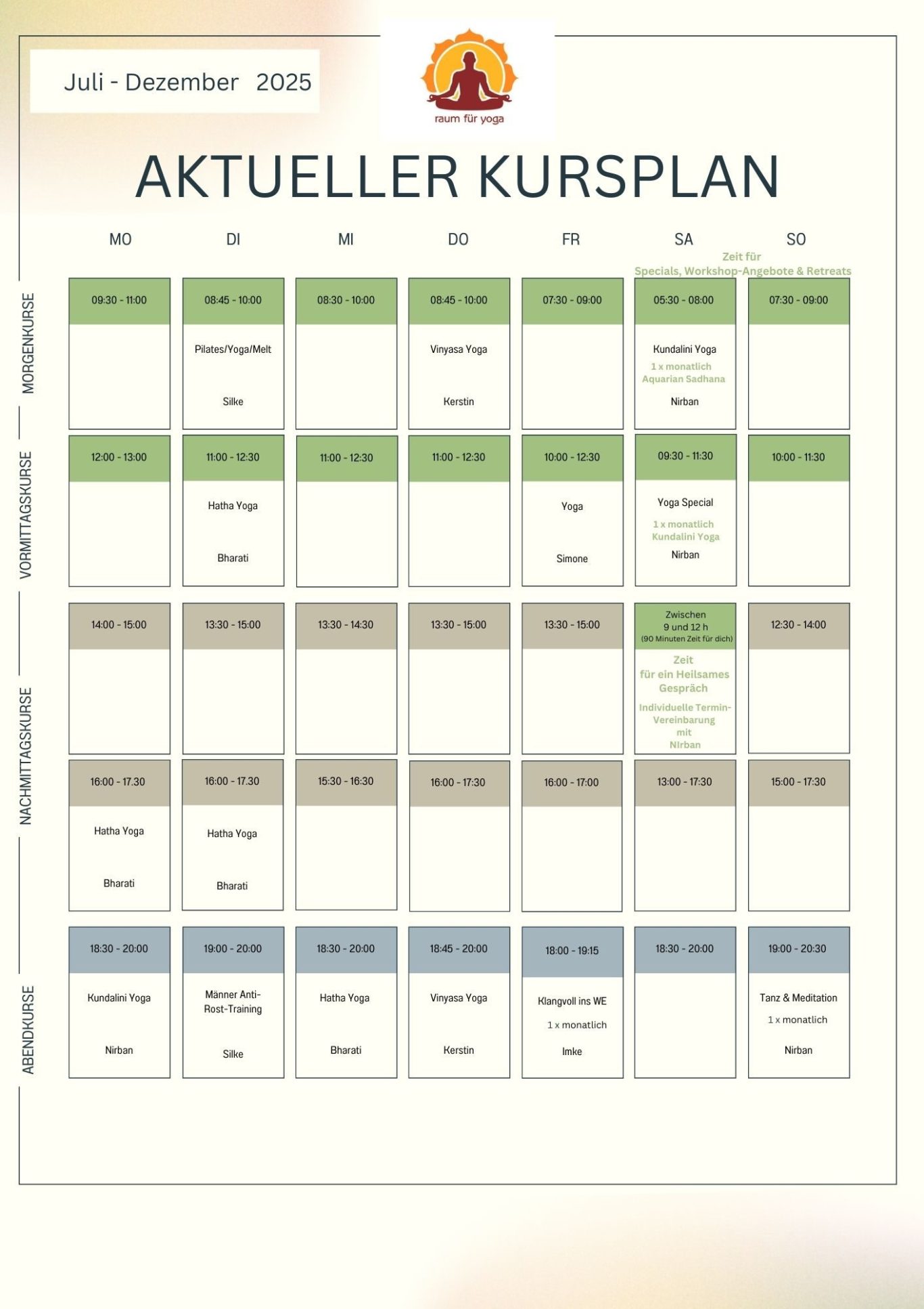 Wir empfehlen dir, 3-4 Stunden vor der Yogastunde nichts schweres zu essen und auf stark duftende Deos oder Parfums zu verzichten. Bitte komme nicht in die Yogastunde wenn du erkältet bist, dich krank fühlst oder Fieber hast, um andere Teilnehmer nicht anzustecken.